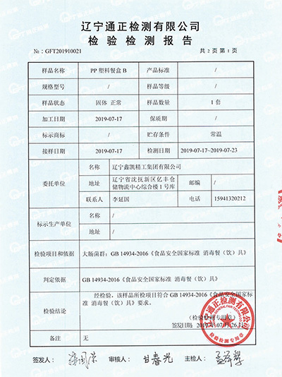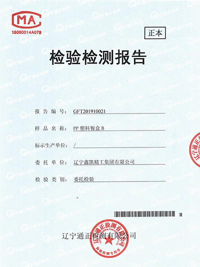 检验检测报告-PP塑料餐盒A